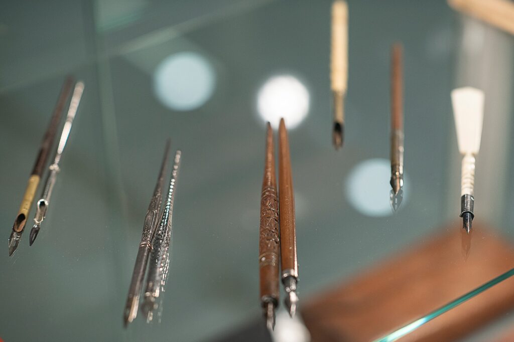 W zbiorach Muzeum znajdują się liczne artefakty związane z historią pisma i kaligrafii, gromadzone przez lata z pasją i dbałością o ich wartość edukacyjną. Kolekcja obejmuje m.in. stare podręczniki, przybory piśmienne, przykłady historycznych krojów pisma, przedmioty dokumentujące rozwój narzędzi i technik pisarskich.