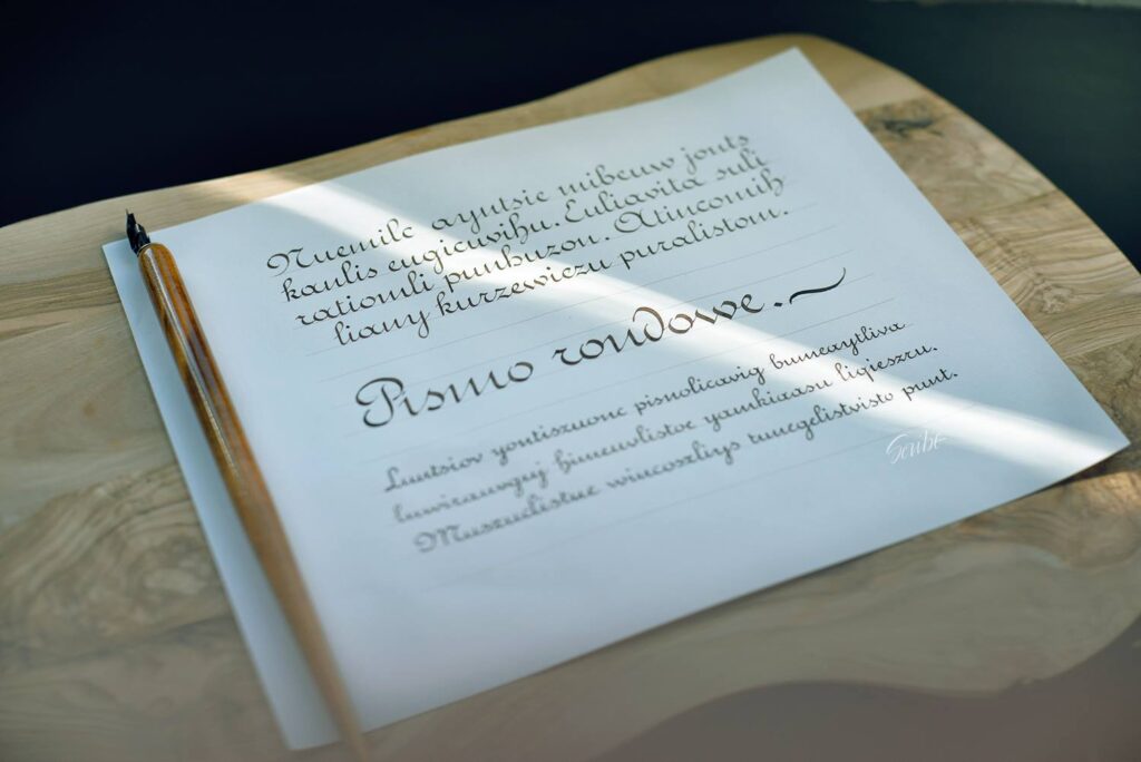 Warsztaty poświęcone są pismu rondowemu, wywodzącemu się z Francji i opracowanemu w XVII w. przez Lucasa Materota – kaligrafa i muzyka z Awinionu. To niezwykle harmonijne, okrągłe pismo, które zachwyca klarownością form i rytmem prowadzonych linii. Choć narodziło się w XVII wieku, pozostawało w użyciu aż do pierwszej połowy XX wieku, a jego odmiany stosowano również w polskiej szkole, zwłaszcza w nagłówkach i zapisach wymagających podkreślenia elegancji.