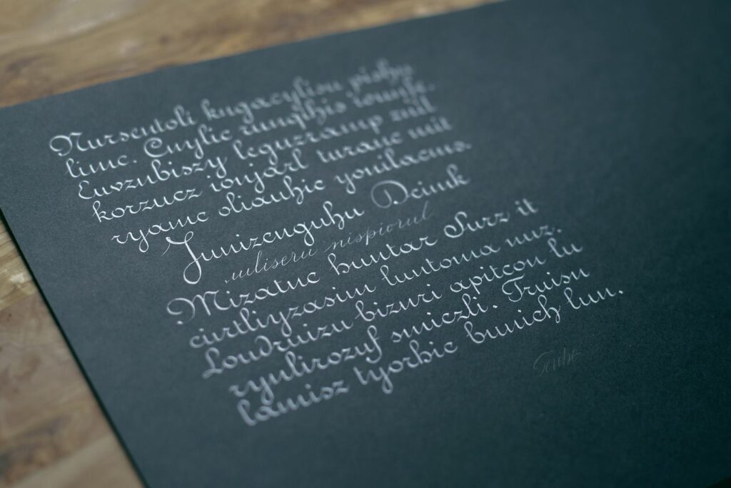 Warsztaty przeznaczone są dla osób zarówno początkujących, jak i zaawansowanych. Na czas zajęć udostępniam wszelkie potrzebne materiały do pracy: papier, atrament, obsadki, stalówki.