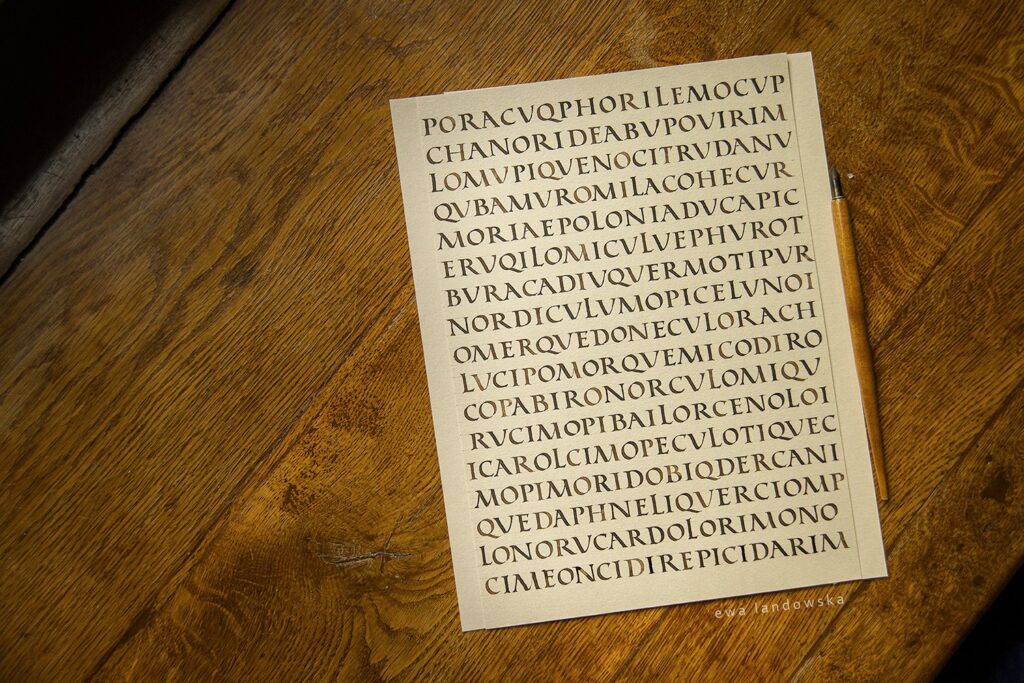 Warsztat poświęcony jest kapitale kwadratowej – jednemu z najtrudniejszych i najbardziej wymagających stylów pisma, przeznaczonemu wyłącznie dla osób zaawansowanych. To absolutna klasyka: pismo starożytnego Rzymu, którego formy przetrwały do dziś w wielkich literach wielu współczesnych krojów pisma. Choć mniej elegancka i subtelna niż kapitała monumentalna, kapitała kwadratowa pozostaje stylem o monumentalnym charakterze, cięższym, bardziej topornym, a jednocześnie wyjątkowo pięknym w swojej archetypicznej prostocie.
