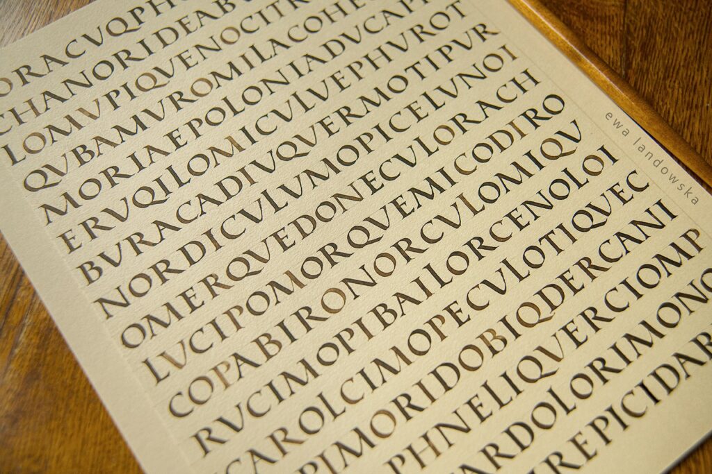 Podczas warsztatu uczestnicy poznają konstrukcję liter oraz zasady kształtowania świateł międzyliterowych, pracując nad precyzją, proporcjami i rytmem, które decydują o sile wyrazu tego ponadczasowego pisma.
