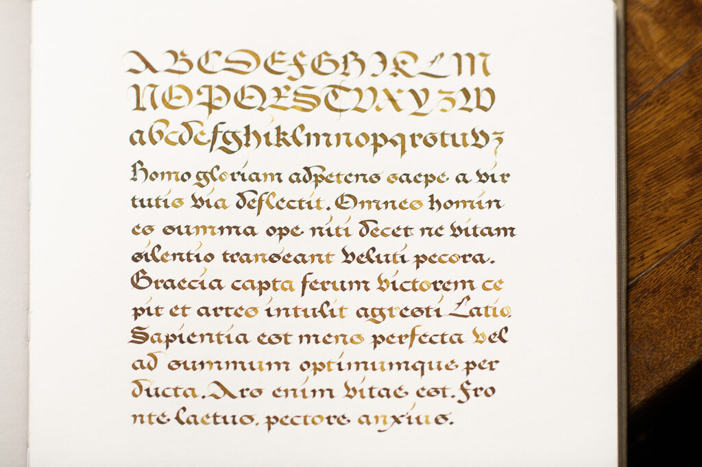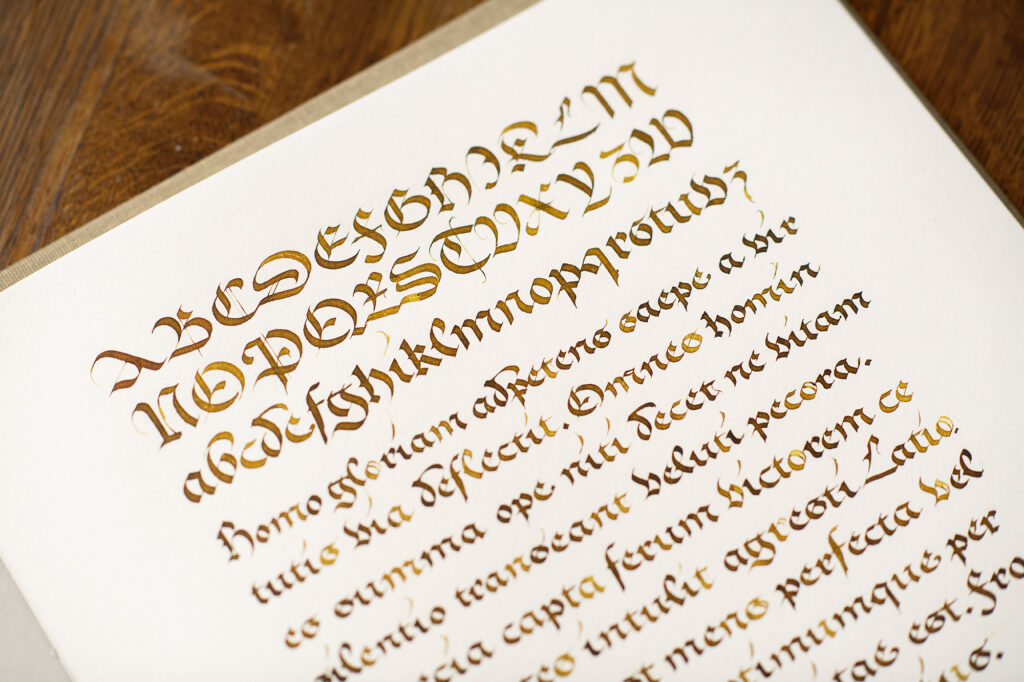 Podczas warsztatów uczestnicy poznają konstrukcję liter, charakterystyczne połączenia oraz sposób prowadzenia narzędzia, który pozwala osiągnąć równowagę między ekspresją a kontrolą. Bastarda gotycka to pismo o wyrazistym charakterze, a zarazem zaskakująco funkcjonalne — historyczne, lecz wciąż inspirujące we współczesnej praktyce kaligraficznej.