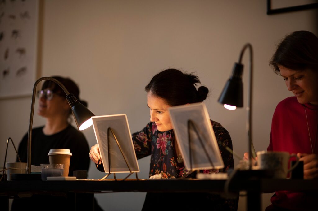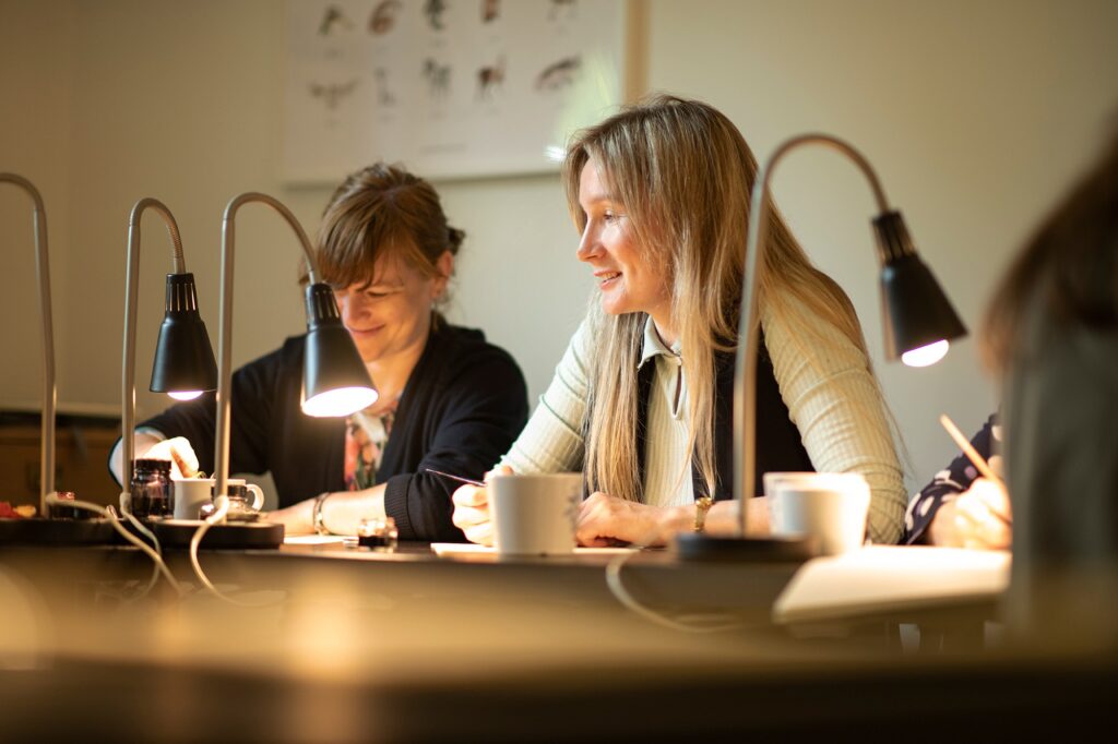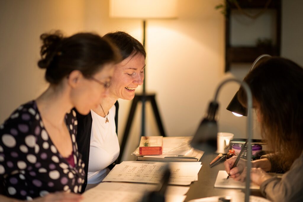 Każdego roku przez naszą szkołę przewija się około 150 adeptów kaligrafii docierających z całej Polski. Niektórzy są z nami od lat, inni dopiero zaczynają swoją przygodę, ale wszyscy współtworzą atmosferę tego miejsca: życzliwość, ciekawość, inspirację i chęć ciągłego odkrywania. Wybrałyśmy edukację stacjonarną — nie online — ponieważ najważniejszy jest dla nas bezpośredni kontakt z człowiekiem. I wiemy, że to doceniacie. Wracacie nie tylko po nowe umiejętności, ale również po spotkania z ciekawymi ludźmi, po rozmowy i po chwilę uważności.